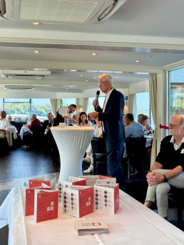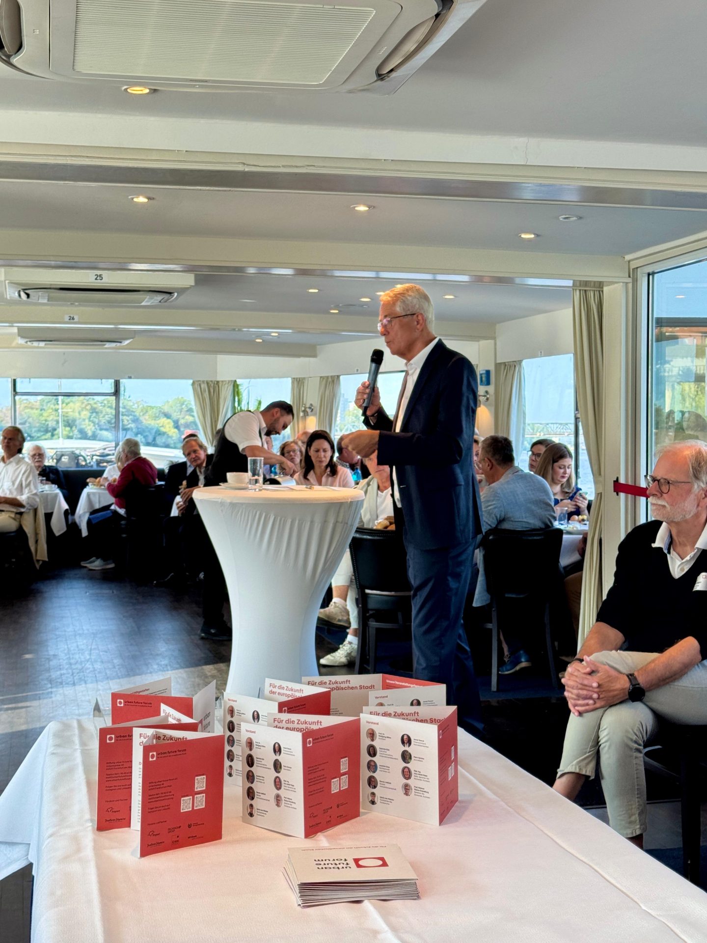 am 20. August 2025 war Dr. Stefan Schulte, Vorstandsvorsitzender der Fraport AG, Gast bei unserer Mainschifffahrt zum Thema: "FRA, Das Tor zur Welt - für die Prosperität Frankfurts". Herr Schulte bot den Anwesenden einen Einblick in die aktuellen Projekte und Weiterentwicklungen am Luftverkehrsdrehkreuz Frankfurt.