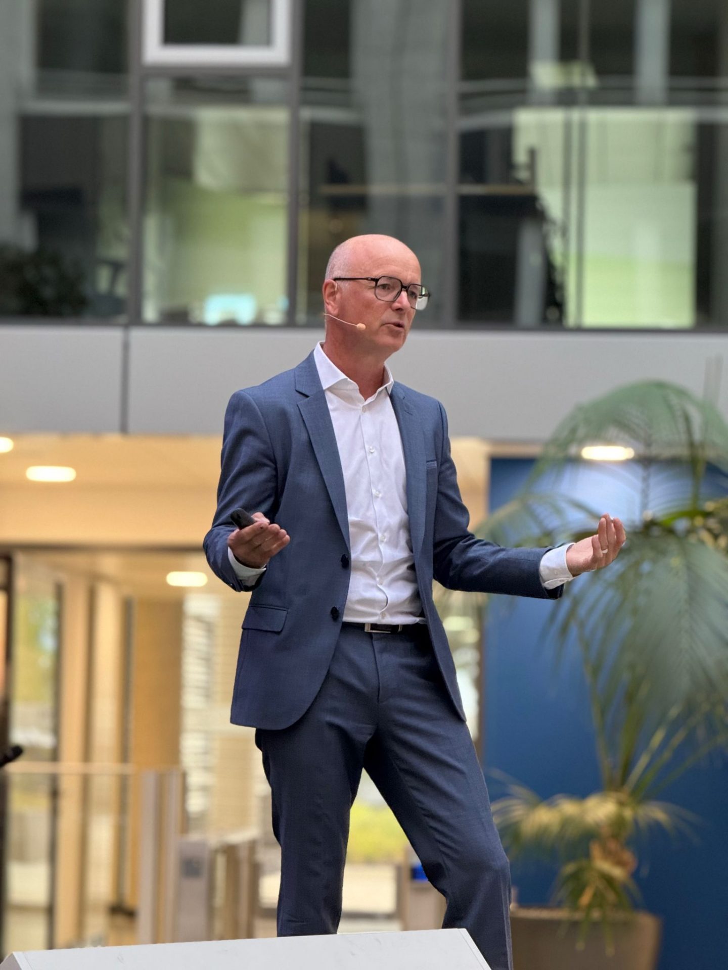 am 26. August 2025 war der TV-Meteorologe Karsten Schwanke Gast im HELABA-Campus in Offenbach. Herr Schwanke hielt einen bedeutungsvollen Vortrag zu den klimatischen Entwicklungen in urbanen Regionen. Der Wissenschaftsjournalist präsentierte sachlich fundiert die Temperaturentwicklungen in deutschen und globalen Städten und verwies auf das Tempo der letzten Jahre(zehnte), mit dem die Hitze in den Sommermonaten zunehme. Mit der globalen Erwärmung gehe einher, dass mehr Wasserdampf in die Atmosphäre emporsteigt und sich große Regenmengen ansammeln, die zu schweren Unwettern führen können.