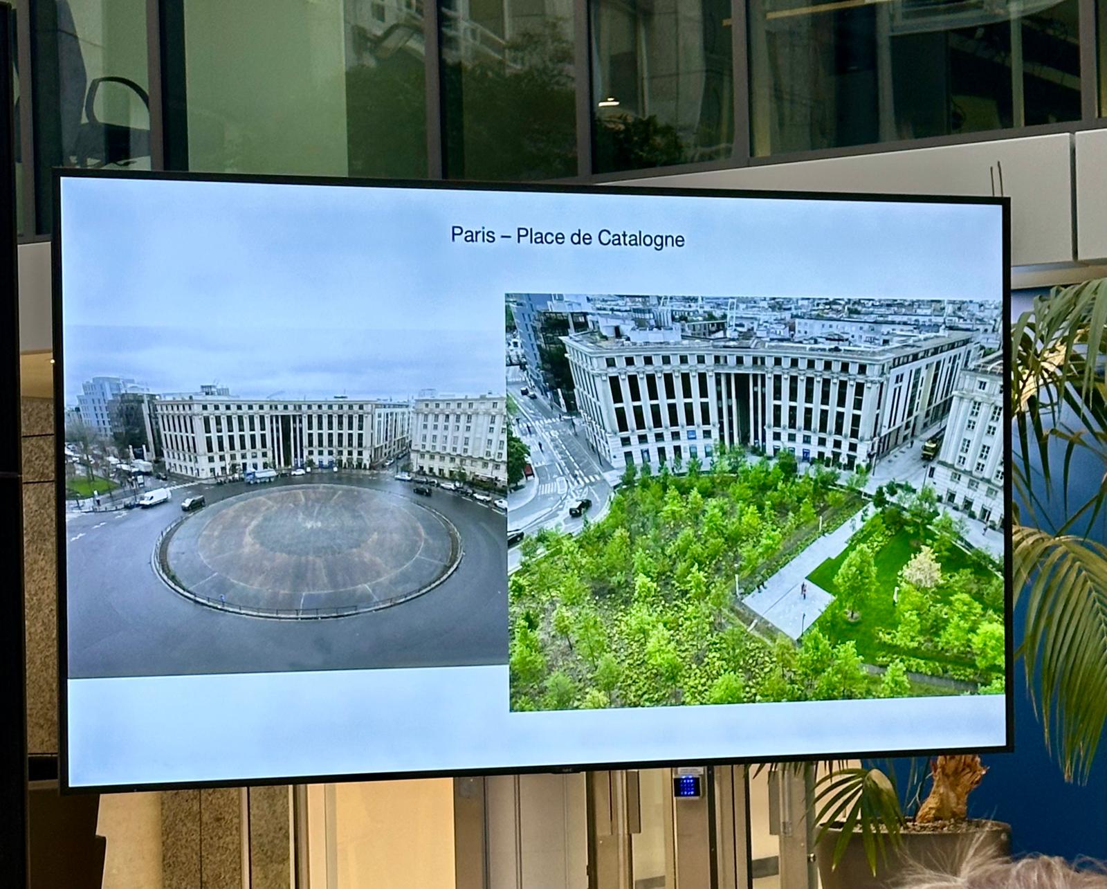 Karsten Schwanke warb für einen nachhaltigen und angepassten Städtebau. Mit geringem Kosten- und Bauaufwand, durch die Begrünung und fließendes Wasser in den Städten, können bereits erstaunliche Abkühlungseffekte für das Leben in der Stadt erzielt werden. Als Best-Practices Beispiele nannte er die Begrünung zentraler Plätze in Paris oder der dänischen Hauptstadt Kopenhagen.