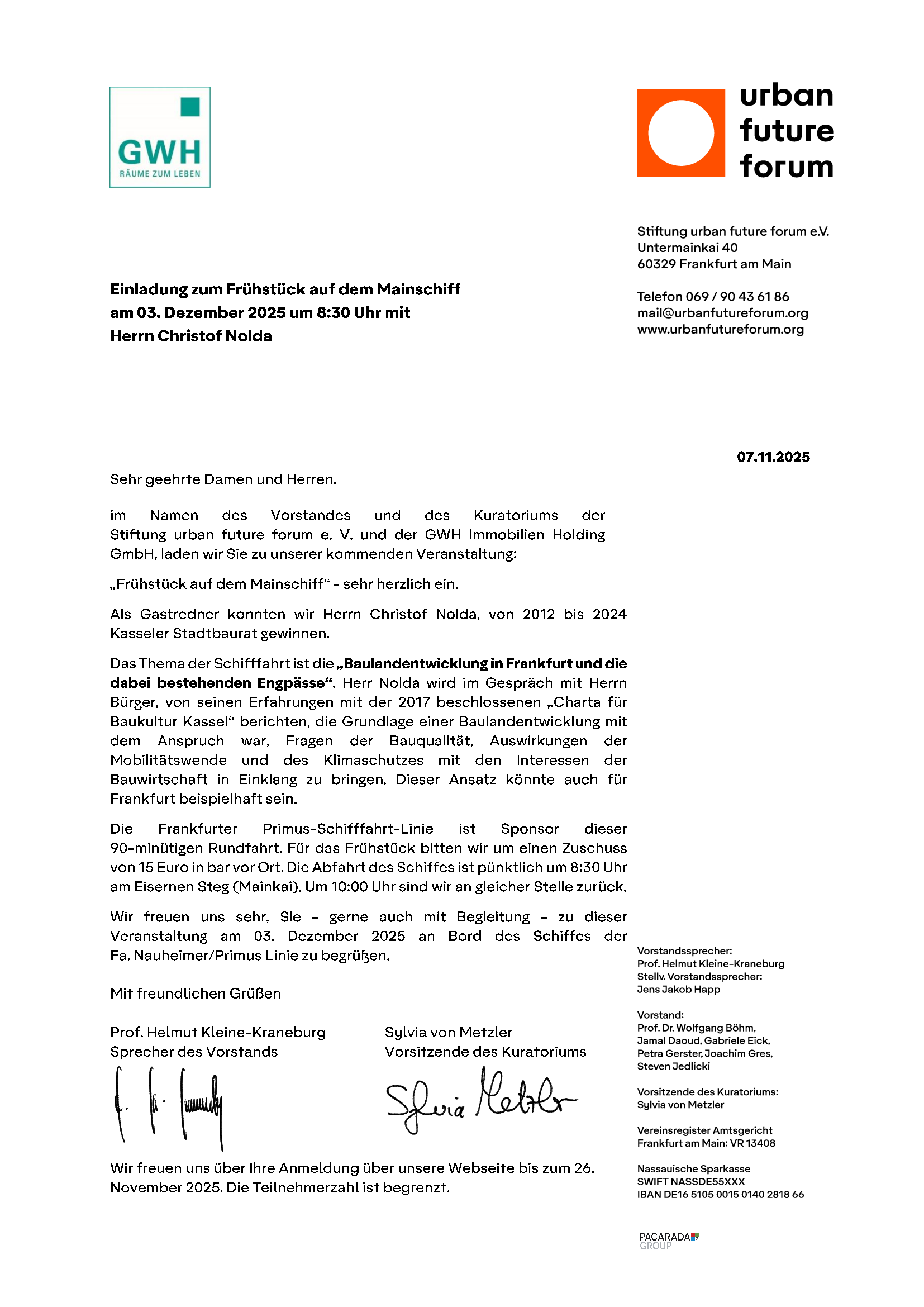Frühstück auf dem Mainschiff mit Herrn Christof Nolda, ehem. Stadtbaurat Kassel