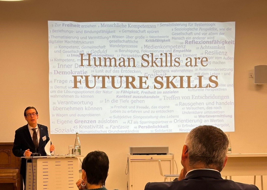 Herr Dievernich zeigte auf, dass die Kernkompetenz der Bildungsanstalten in der Erziehung freiheitlich denkender Menschen liegen solle. Um die Freiheit trotz aufkommender künstlicher Intelligenz und digitaler Datenüberflutung zu erhalten, benötigen die Lernenden umso mehr menschliche Kompetenz wie Reflexions-, Kritik- oder Denkfähigkeit. Die Schule sei ein Ort, an dem die Neugier und der Entdeckergeist gefördert werden solle. Dies helfe den Menschen die komplexen Probleme der Gegenwart und Zukunft aus divergierenden Blickwinkeln verstehen und lösen zu können. Eine besondere Aufgabe der Bildungsanstalten besteht in einer vollumfänglichen Ausbildung der Medienkompetenz.