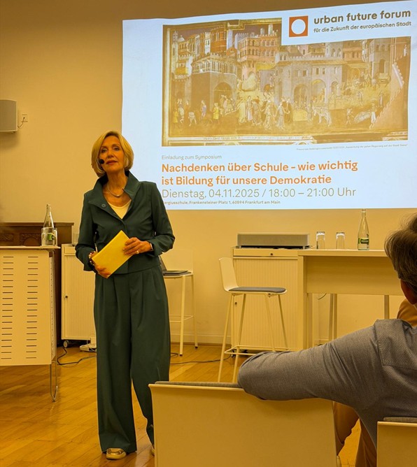 am 4. November 2025 fand unser Bildungssymposium zum Thema: wie wichtig ist Bildung für unsere Demokratie in der Bergiusschule in Frankfurt statt. Die Bergiusschule ist eine Berufsfachschule, unter anderem liegt der Schwerpunkt in der gastronomischen Ausbildung junger Erwachsener. Prof. Dr. Frank Dievernich von der Stiftung Polytechnische Gesellschaft hielt zu Beginn einen aufschlussreichen Vortrag über „Menschenbildung als Grundlage der Demokratie“.